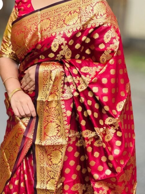 সিল্কি কাতান শাড়ি ব্লাউজ পিস সহ/@3
