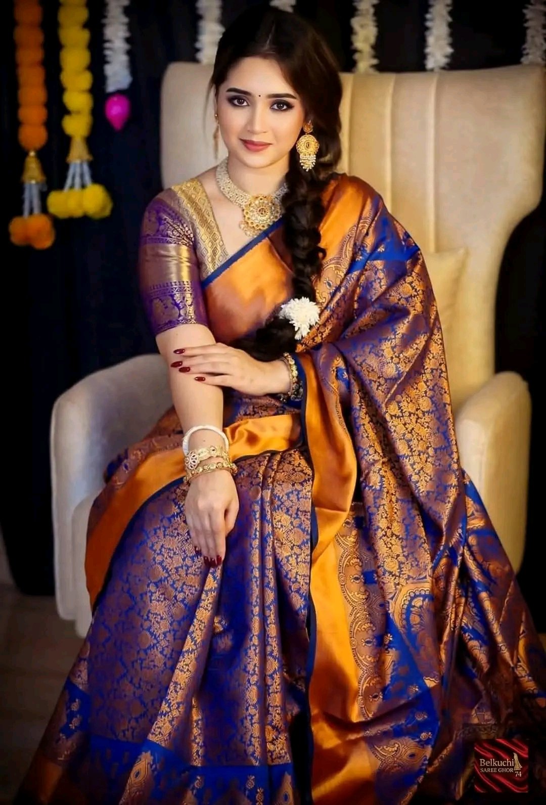 কাঞ্চিপুরম শাড়ি ব্লাউজ পিস সহ//@1