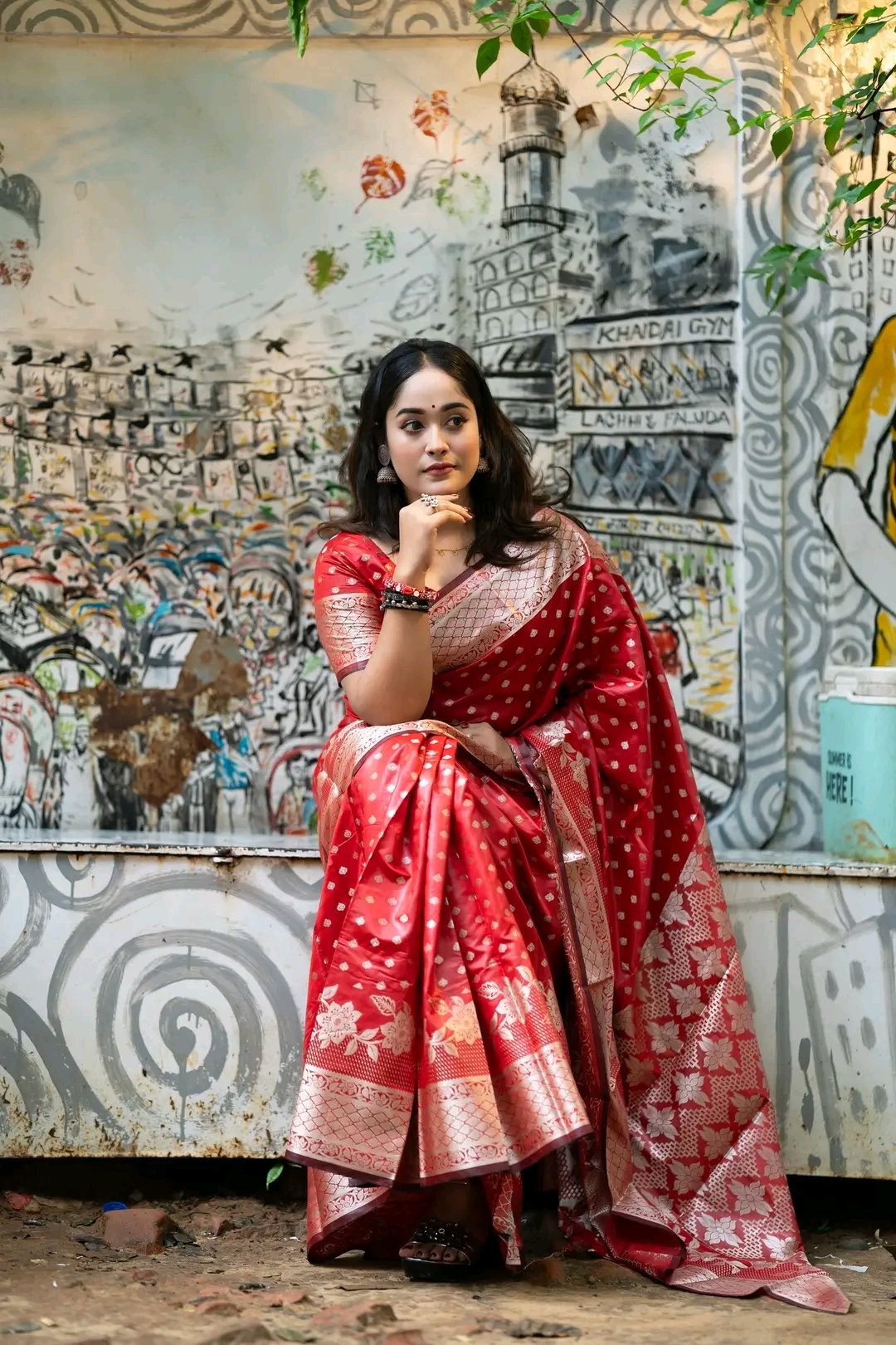 সিল্কি কাতান শাড়ি ব্লাউজ পিস সহ/@3