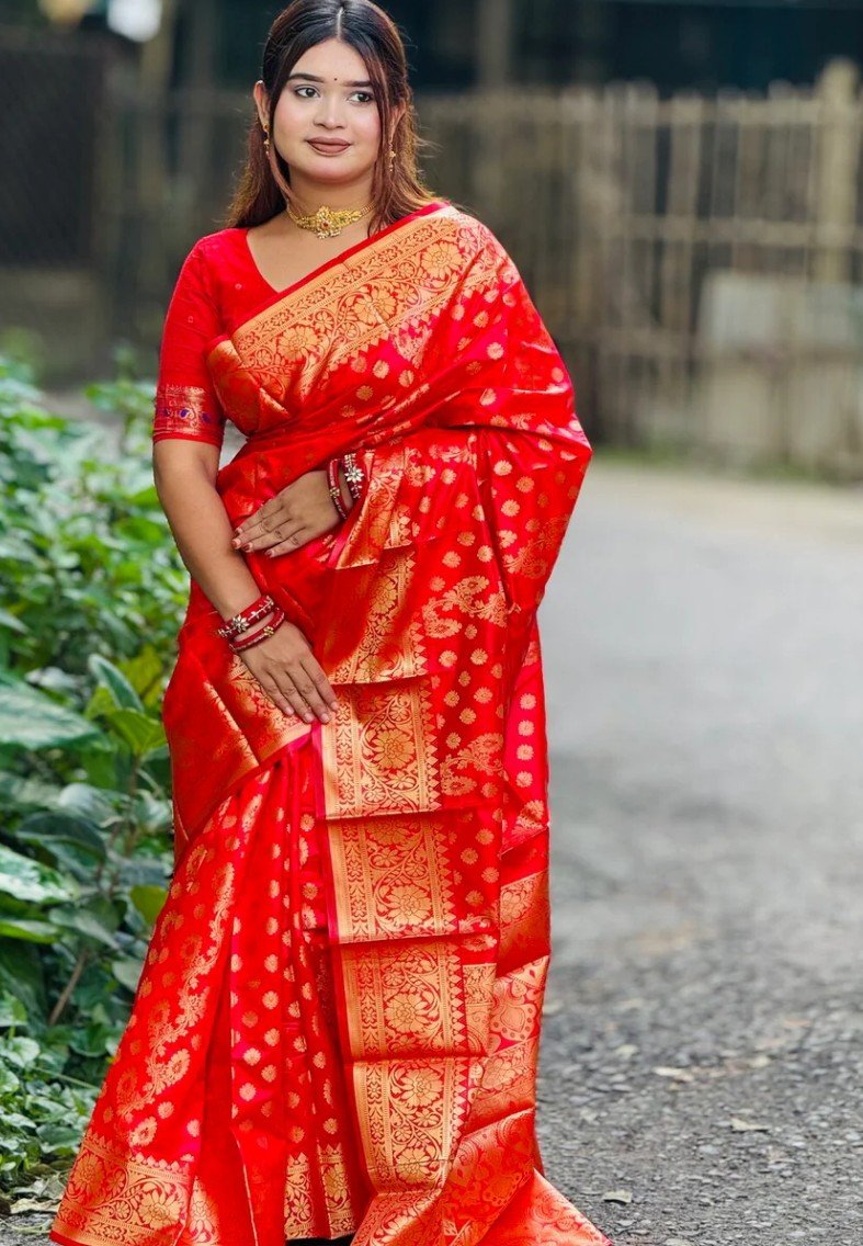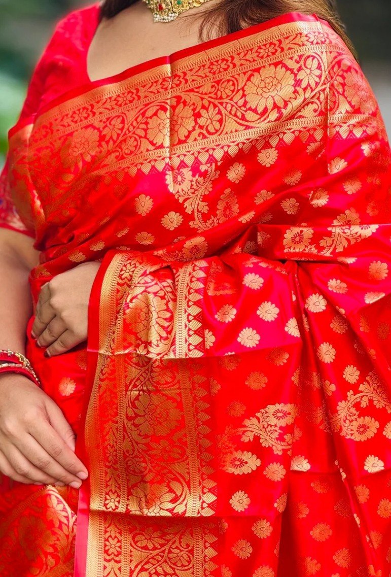 সিল্কি কাতান শাড়ি ব্লাউজ পিস সহ 012